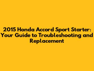 2015 Honda Accord Sport Starter: Troubleshooting & Replacement