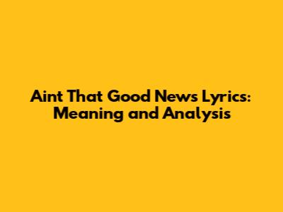 Ain't That Good News Lyrics: Meaning And Analysis