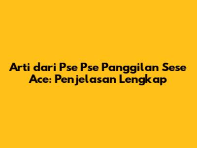 Arti Dari 'Pse Pse Panggilan Sese Ace': Penjelasan Lengkap