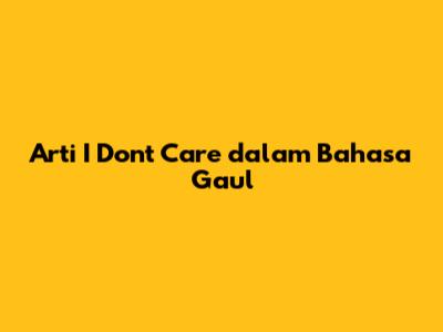 Arti 'I Don't Care' Dalam Bahasa Gaul