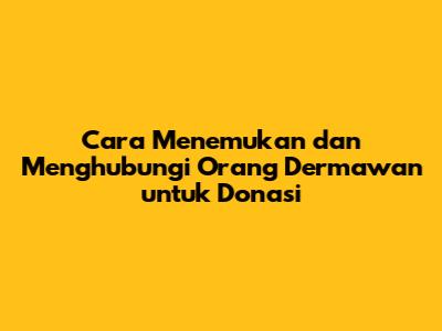 Cara Menemukan Dan Menghubungi Orang Dermawan Untuk Donasi
