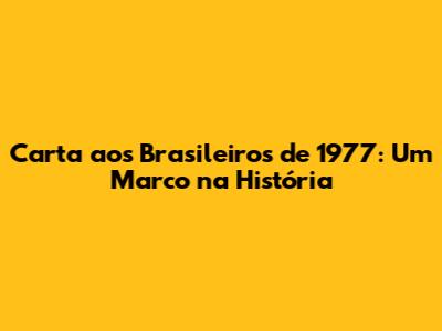 O Que Foi a Carta aos Brasileiros de 1977?