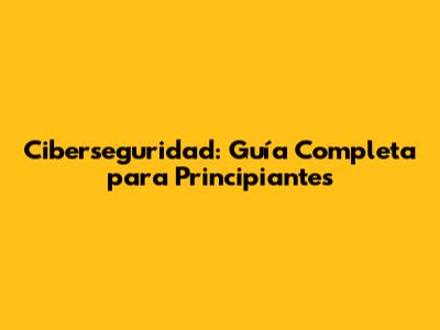 Ciberseguridad: Guía Completa Para Principiantes