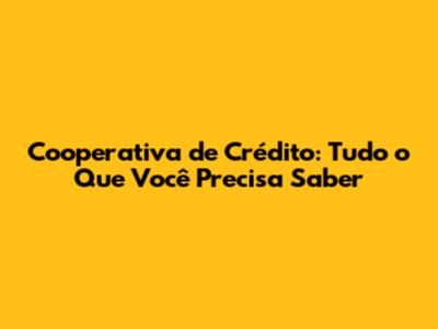 Como Funcionam as Cooperativas de Crédito?