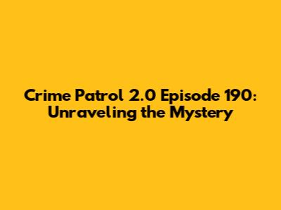 Hey guys! Are you ready to dive deep into the gritty world of crime? Today, we're dissecting Crime Patrol 2.0 Episode 190. This show, known for its gripping narratives based on real-life incidents, has kept us all on the edge of our seats for years. In this article, we'll explore what makes Crime Patrol so captivating, delve into the specifics of Episode 190, and discuss the show's impact on Indian society. So, grab your detective hats, and let's get started!