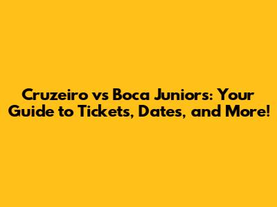 Cruzeiro Vs Boca Juniors: Tickets, Dates & More!