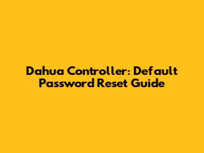 Dahua Controller: Default Password Reset Guide