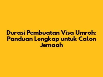Pembuatan visa umroh merupakan proses yang penting dalam persiapan ibadah umroh. Durasi pembuatan visa umroh bervariasi, namun umumnya memakan waktu sekitar 7 hingga 14 hari kerja. Dengan memahami prosesnya, memenuhi persyaratan, dan mengikuti tips yang telah disebutkan, Anda dapat memastikan pembuatan visa umroh berjalan lancar dan perjalanan ibadah Anda menjadi lebih nyaman dan khusyuk. Jangan ragu untuk bertanya kepada agen perjalanan jika ada hal yang kurang jelas. Selamat mempersiapkan diri untuk melaksanakan ibadah umroh! Semoga Allah SWT memberikan kemudahan dan kelancaran dalam setiap langkah Anda.
