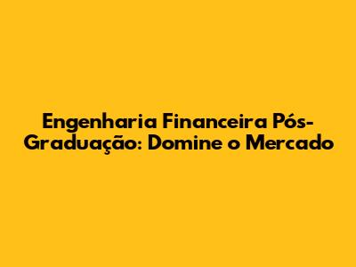Engenharia Financeira Pós-Graduação: Domine O Mercado