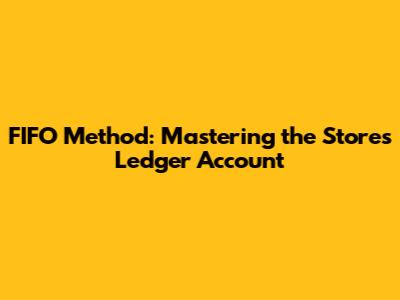 FIFO Method: Mastering The Stores Ledger Account