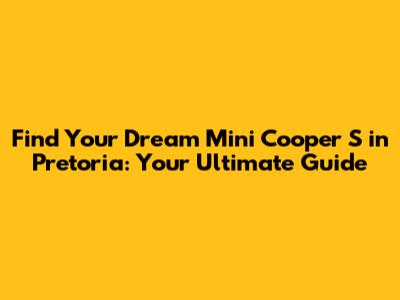 By following these tips, you'll be well-equipped to find and purchase the perfect Mini Cooper S for sale in Pretoria.