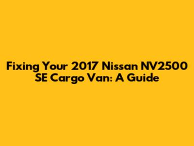 Fixing Your 2017 Nissan NV2500 SE Cargo Van: A Guide