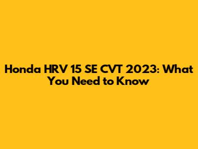 Honda HRV 15 SE CVT 2023: What You Need To Know