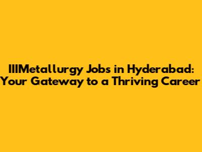IIIMetallurgy Jobs: Opportunities In Hyderabad
