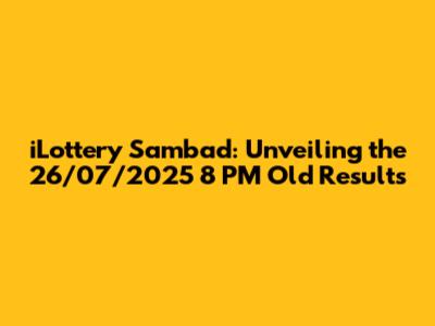 ILottery Sambad: 26/07/2025 8 PM Old Results