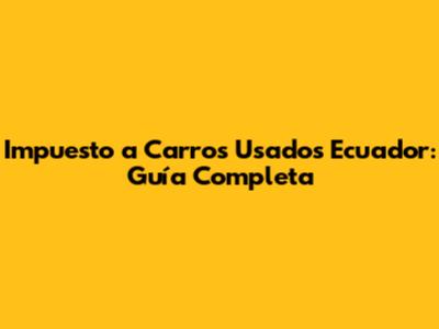 Impuesto A Carros Usados Ecuador: Guía Completa