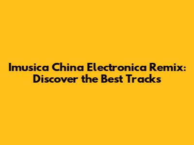 Imusica China Electronica Remix: Discover The Best Tracks
