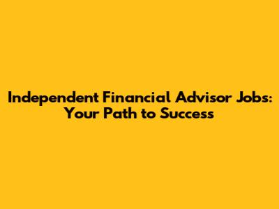 Independent Financial Advisor Jobs: Your Path To Success