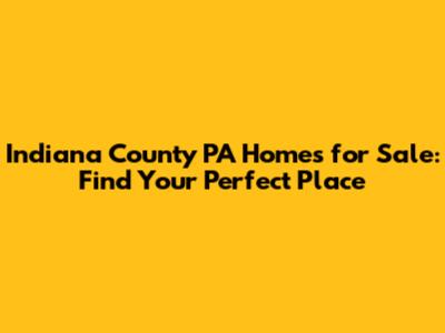 Indiana County PA Homes For Sale: Your Dream Home Awaits!