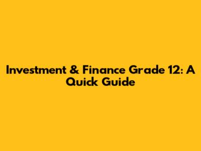 Investment & Finance Grade 12: A Quick Guide