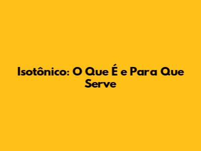 Isotônico: O Que É E Para Que Serve