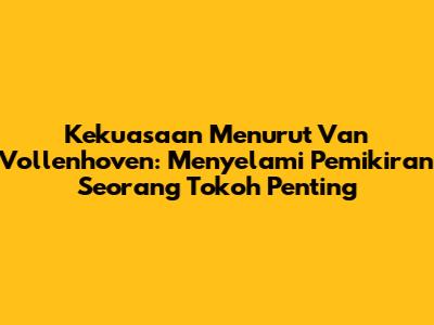 Kekuasaan Menurut Van Vollenhoven: Sebuah Tinjauan Mendalam