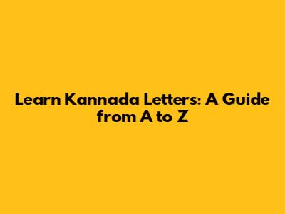 Learn Kannada Letters: A Guide From A To Z