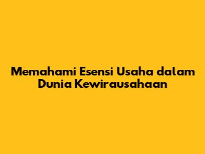 Memahami Esensi Usaha Dalam Dunia Kewirausahaan