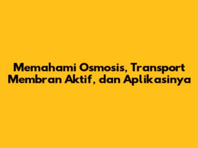 Memahami Osmosis, Transport Membran Aktif, Dan Aplikasinya