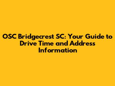 OSC Bridgecrest SC: Drive Time & Address Info