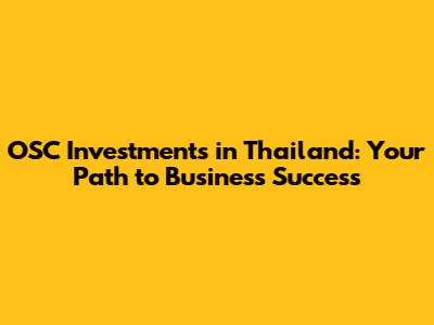 OSC Investments: Your Guide To Thriving In Thailand