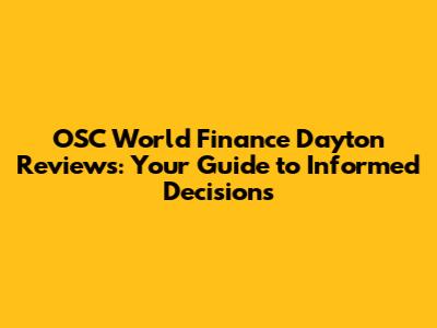 OSC World Finance Dayton Reviews: What You Need To Know