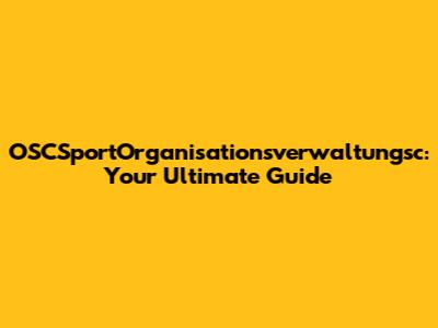 OSCSportOrganisationsverwaltungsc: Your Guide