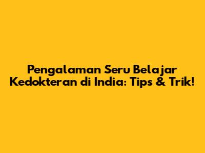 Pengalaman Seru Belajar Kedokteran Di India: Tips & Trik!