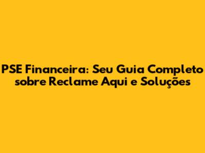 PSE Financeira: Tudo Sobre Reclame Aqui E Como Resolver Problemas