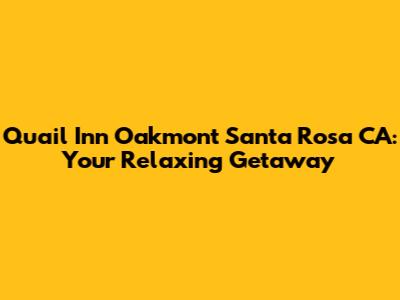 Are you planning a trip to the beautiful Santa Rosa, California, and searching for the perfect place to stay? Look no further! Quail Inn Oakmont offers a delightful retreat with comfortable accommodations and a convenient location. In this article, we'll dive deep into everything you need to know about Quail Inn Oakmont, ensuring you have all the information to make your stay unforgettable. From its cozy rooms and amenities to nearby attractions and dining options, we've got you covered. So, sit back, relax, and let's explore why Quail Inn Oakmont should be at the top of your list for your next Santa Rosa adventure.