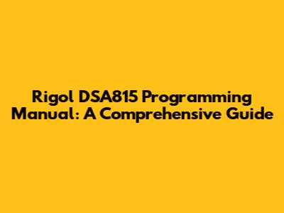 Rigol DSA815 Programming Manual: A Comprehensive Guide