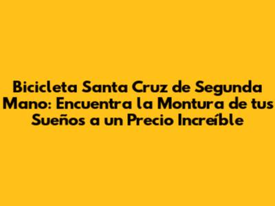 驴Est谩s buscando una bicicleta de monta帽a de alto rendimiento sin tener que gastar una fortuna? 隆Una bicicleta Santa Cruz de segunda mano podr铆a ser la soluci贸n perfecta para ti! En este art铆culo, te guiaremos a trav茅s del mundo de las bicicletas Santa Cruz usadas, brind谩ndote consejos y trucos para encontrar la bicicleta ideal que se ajuste a tus necesidades y presupuesto. 隆Prep谩rate para descubrir c贸mo conseguir una montura de ensue帽o a un precio incre铆ble!