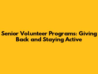 Senior Volunteer Programs: Giving Back And Staying Active