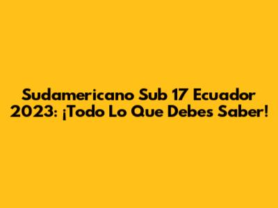 Sudamericano Sub 17 Ecuador 2023: ¡Todo Lo Que Debes Saber!