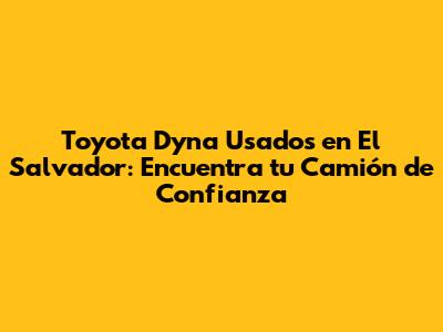 El Toyota Dyna ha estado presente en el mercado salvadore帽o durante muchos a帽os, por lo que es posible encontrar una variedad de modelos y generaciones. Algunos de los modelos m谩s comunes que puedes encontrar usados en El Salvador incluyen:
