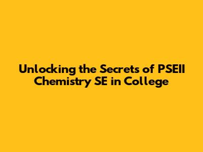 Unlocking The Secrets Of PSEII Chemistry SE In College